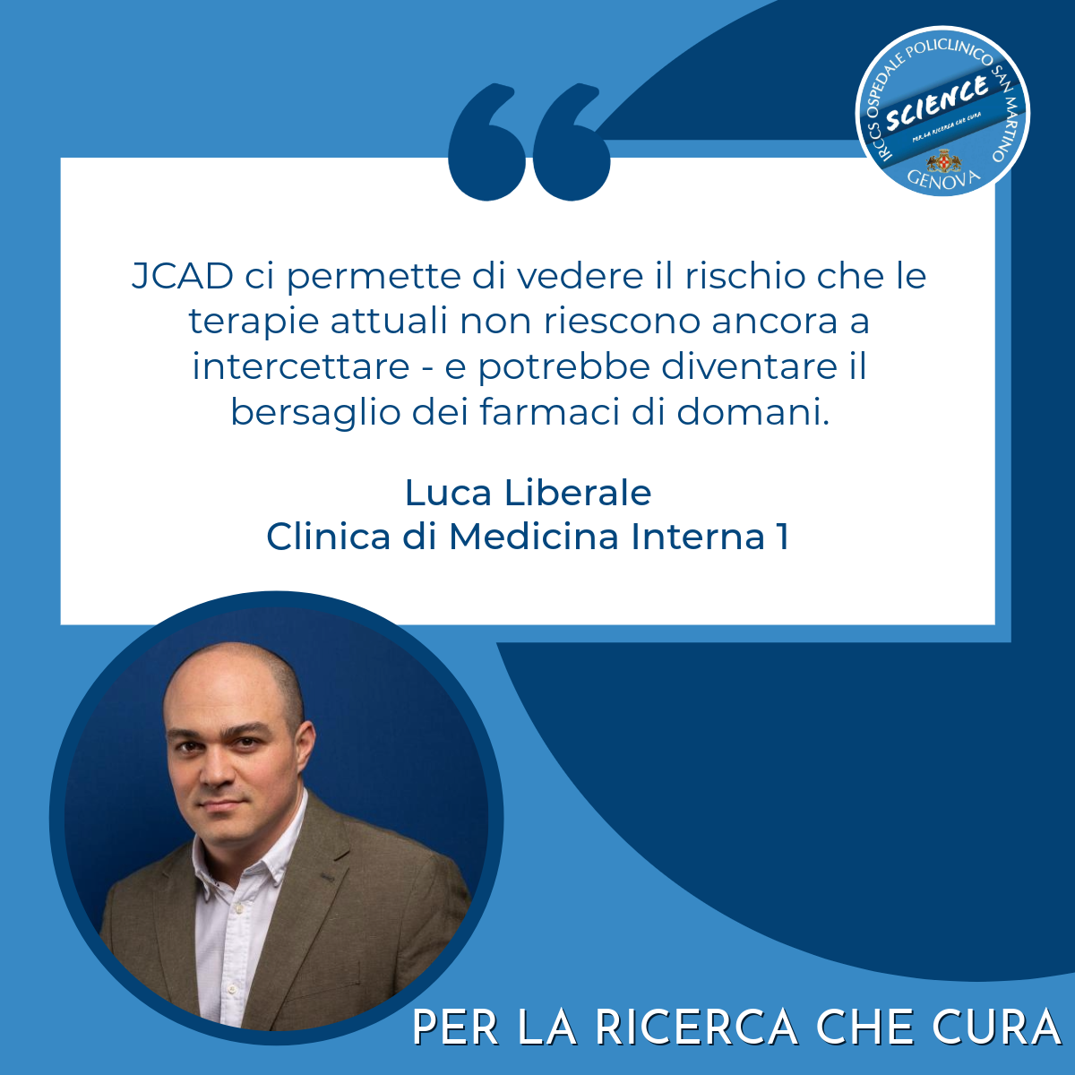 "JCAD ci permette di vedere il rischio che le terapie attuali non riescono ancora a intercettare - e potrebbe diventare il bersaglio dei farmaci di domani" spiega il Prof. Liberale.